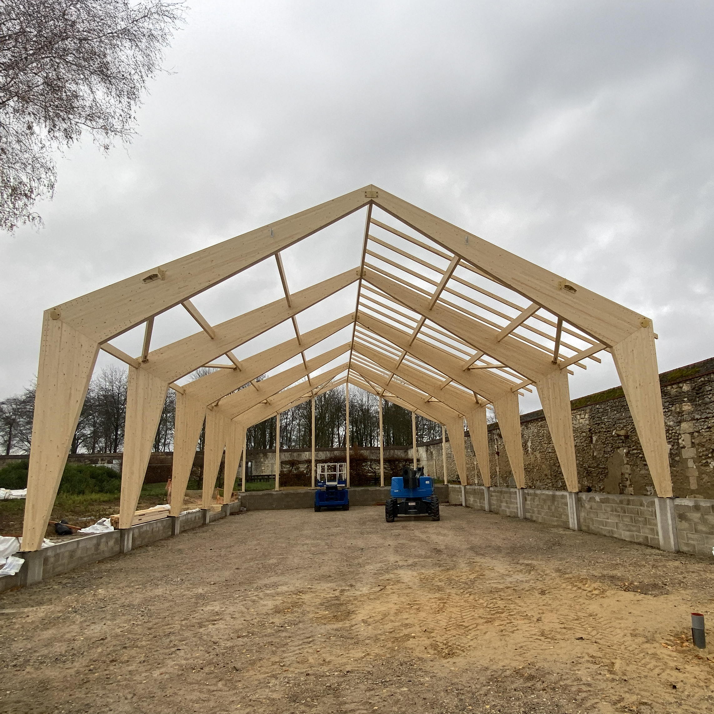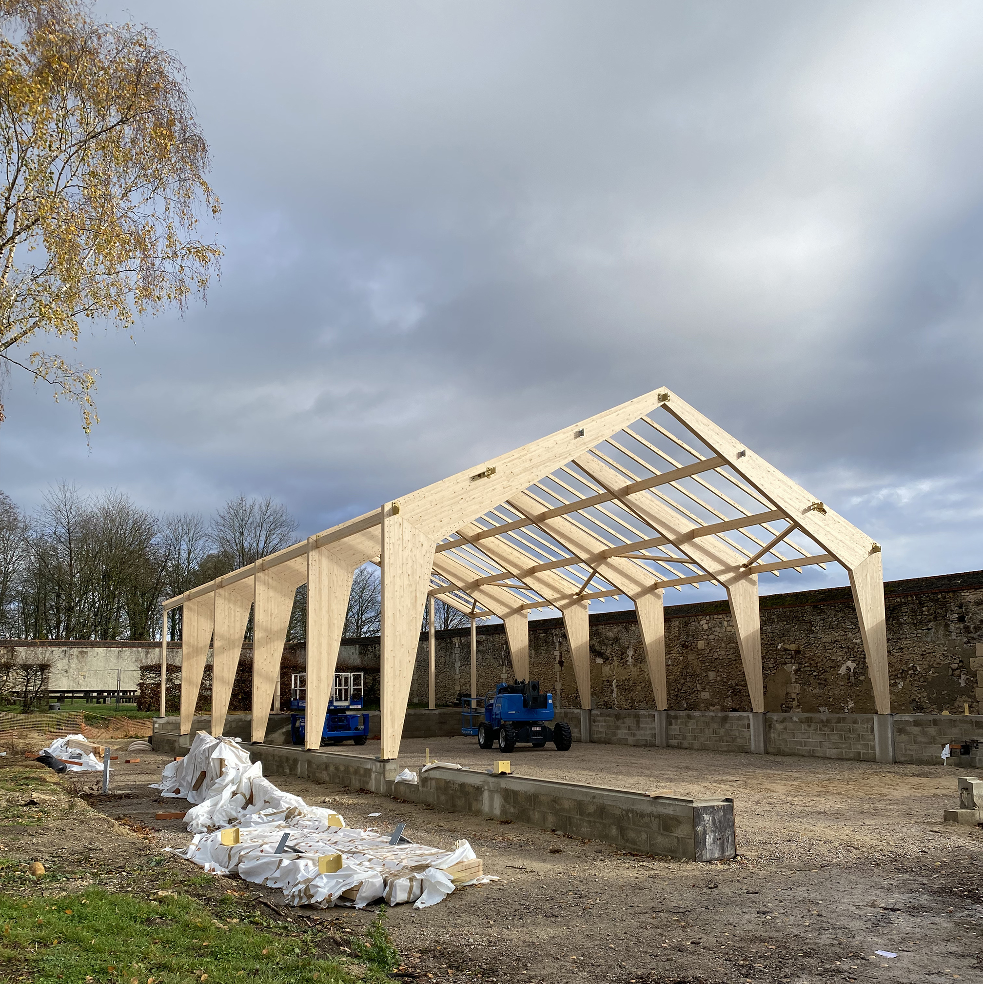 Un pavillon d’exposition en bois y compris la structure, les murs de façade et leur parement / novembre 2025